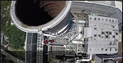 La imagen anterior está captada por un dron con tecnologías de cámaras HD (alta definición) , a simple vista con la imagen es posible sacar conclusiones sobre el estado de la chimenea sin necesidad de que un operador suba y realice la labor, además permite tener una visión global de toda la instalación. Por otra parte, la opción térmica permite encontrar algún tipo de falla que genere un punto elevado de temperatura (punto caliente), haciendo posible encontrar fugas de energía con las que disminuye la eficiencia y así son muchas las aplicaciones que se pueden llevar a cabo en este tipo de plantas.