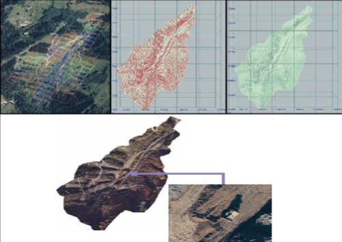 Algo de lo mencionado anteriormente se muestra en la fotografía donde se aprecia distintas formas de procesar una imagen, se debe decir que para esta imagen se instalan puntos o localizadores GPS en el terreno de modo que aumenta la precisión geográfica del Drone.